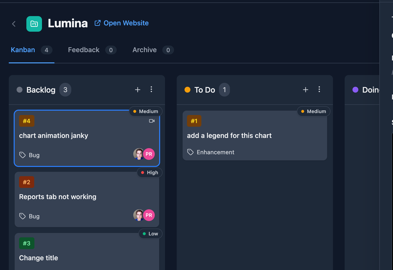 Feedback automatically appears in your Kanban board. Assign tasks, set priorities, and track progress without leaving the app.